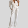 Denne jumpsuit med brede stropper kombinerer et klassisk snit med en afslappet form i et enkelt lag. De brede stropper giver støtte ovenpå, mens den fyldige benlinje giver en flydende dækning. Perfekt til hverdagsbrug, ærinder eller afslappede møder, når du foretrækker et alt-i-et outfit.
