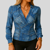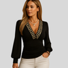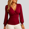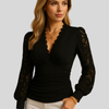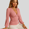 Dametop med langærmet V-hals