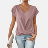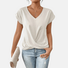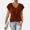 Den klassiske V-udskæring og de korte ærmer skaber et rent, alsidigt look, der passer smukt sammen med jeans, shorts eller nederdele. Denne ensfarvede top er perfekt til midaldrende kvinder, der søger et afslappet, men alligevel poleret hverdagsplagg, og den går ubesværet fra afslappede udflugter til afslappet kontorbrug.