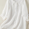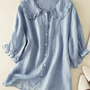 Denne bomulds-hørskjorte tilbyder en blanding af komfort og tidløs charme, hvilket gør den til et alsidigt supplement til din garderobe. Peter Pan-flæsekraven tilføjer et strejf af femininitet, mens den løse pasform sikrer komfort hele dagen.