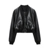 Vintage bomberjakke til kvinder – Kunstlæder med ribkrave og lynlåslommer
