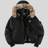 Løft din overtøjsrotation med denne vatterede bomberjakke med en hætte i imiteret pels for ekstra tekstur og tilstedeværelse. Yderstoffet har et moderne snit med ribkant forneden og manchetterne, mens hætten tilføjer visuel interesse og funktionel tiltrækning. Ideel til daglig pendling, weekendture i byen eller lag-på-lag-beklædning i køligere vejr, forener dette stykke stil og hverdagsformål.