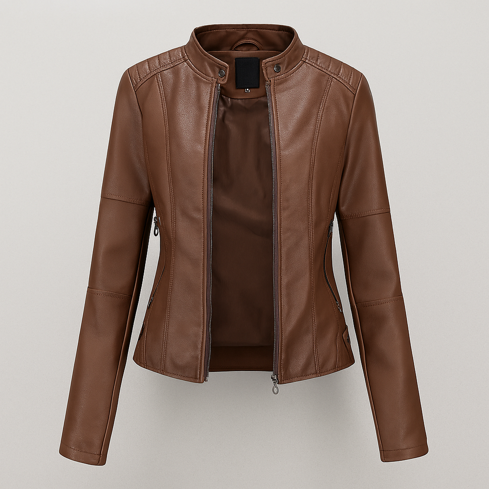Rød læderjakke til damer med tætsiddende pasform