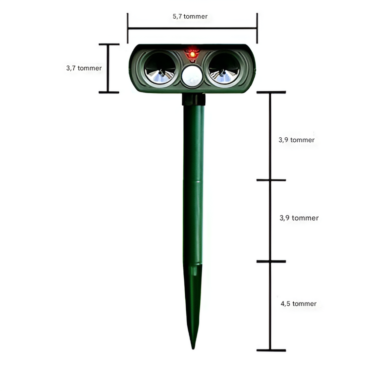 ✔ Udsender ultralyd for at afvise dyr på en human måde