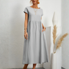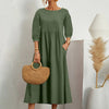 Løft din garderobe med midikjolen, en perfekt blanding af afslappet elegance og komfort. Denne kjole er designet til den moderne kvinde og tilføjer et strejf af ynde til ethvert outfit, uanset om du er på vej på kontoret eller nyder en afslappet udflugt.
