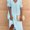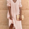 Midikjolen kombinerer ubesværet elegance og komfort, hvilket gør den til et ideelt valg til forskellige sommeranledninger. Dens alsidige design giver mulighed for nemme overgange fra afslappede udflugter i dagtimerne til mere raffinerede aftenarrangementer.