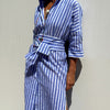 Træd ind i efterårsstilen med denne elegante langærmede skjortekjole designet med klassiske striber, en flatterende empiretalje og et matchende bælte, der definerer din silhuet. Den nedadgående reverskrave, knapper foran og midterlægslængden gør den perfekt til kontorbrug, afslappede udflugter eller elegante begivenheder i dagtimerne.