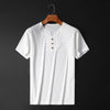 Lichtgewicht heren T-shirt fra katoen-linnen med knoopsluiting.