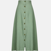 - Pasform: A-formet maxi-silhuet, der skinner ned langs talje og hofter