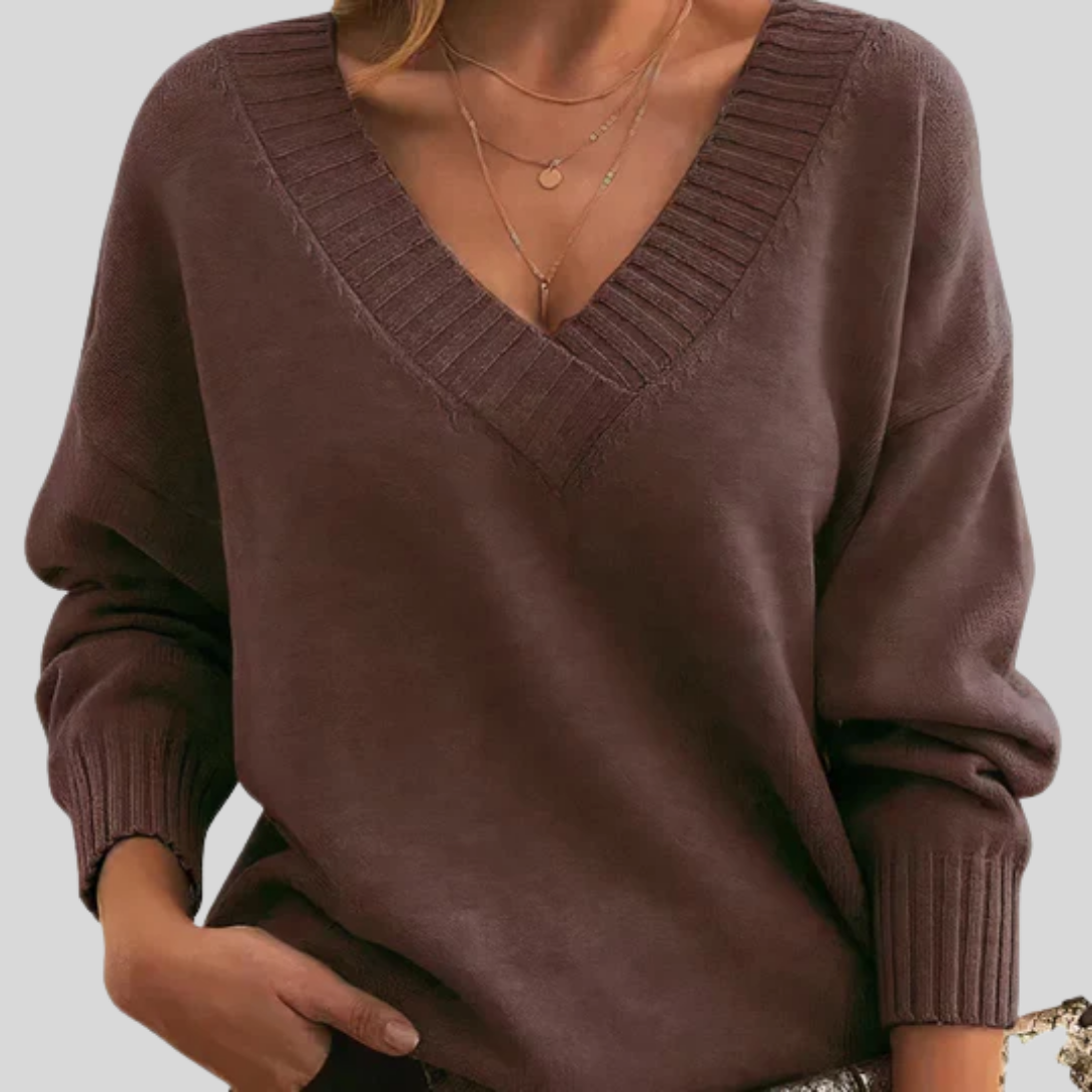 Denne strikkede pullover til kvinder har et klassisk V-halsdesign, der komplementerer ethvert outfit. Den er lavet af et blødt, blandet stof og tilbyder et poleret look, der er velegnet til arbejde, rejser eller afslappede lejligheder. Dens enkle silhuet og ribdetaljer gør den til et uundværligt stykke tøj i enhver garderobe.