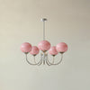 Moderne lyserød og guld lysekrone med elegante glasskærme, ideel loftslampe til elegant boligindretning og belysning.