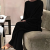 Dette todelte striksæt er designet til hverdagsbrug og består af en langærmet sweater kombineret med matchende bukser for et koordineret vinterlook. Strikteksturen tilføjer et sæsonbestemt touch, mens den afslappede silhuet passer til hjemmerutiner, ærinder eller afslappede udflugter.