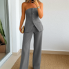 Hold dig ubesværet chik med dette minimalistiske 2-delte modesæt, designet til varme dage og alsidig styling. Sættet har en ærmeløs, stropløs tanktop med knapdetaljer kombineret med højtaljede ankellange bukser for en ren, moderne silhuet. Tøjet er lavet af en åndbar polyester-bomuldsblanding og tilbyder let komfort med en normal pasform, der er perfekt til afslappede udflugter, brunch eller afslappede begivenheder.