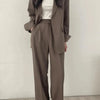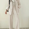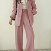 ✔️ Flatterende pasform – Designet med en struktureret blazer og matchende bukser med vide ben, der fremhæver din silhuet og samtidig giver en afslappet følelse.