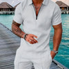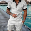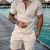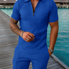Hold dig cool og stilfuld i denne sæson med dette sommersæt med poloshirts til mænd. Med en moderne polotop med lynlås og V-hals og matchende shorts med snøre, leverer dette lette, åndbare sæt en afslappet sommerstil, der er perfekt til stranddage, afslapning eller afslappede udflugter.