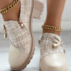 Træd ind i tidløs elegance med disse slip-on hæle med blondedetaljer, der er designet til at blande romantisk charme med ubesværet anvendelighed. Med deres flade silhuet og runde tå tilbyder de en flatterende form og sikker komfort ved hvert skridt.