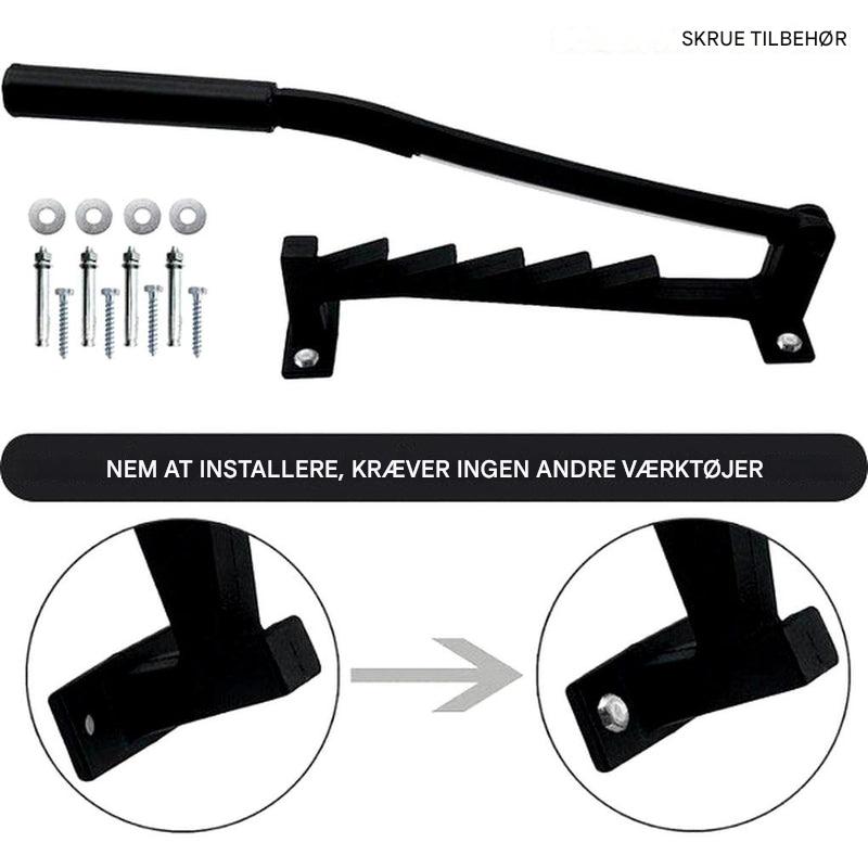 Manuel brændekløver med vægbeslag – håndtagsaktiveret brændeværktøj