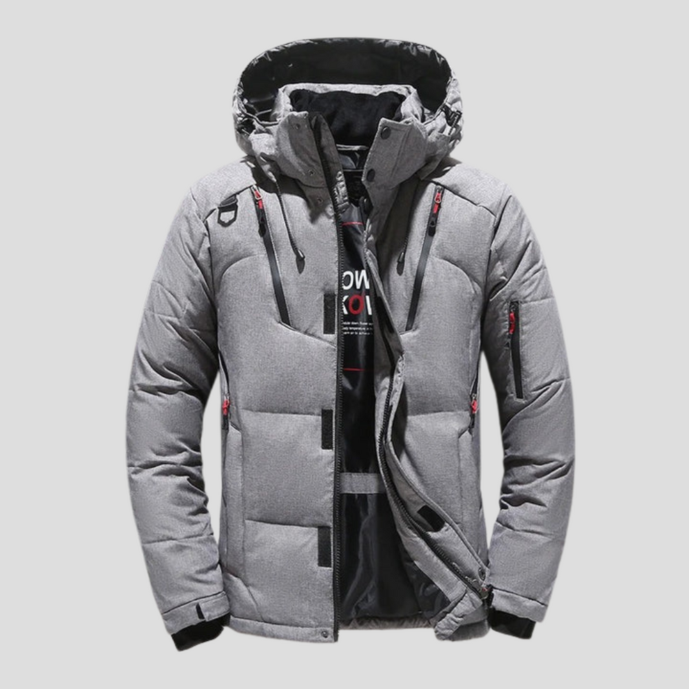 En raffineret dunjakke, der kombinerer isolering og stil til brug i den kolde sæson.