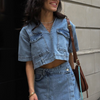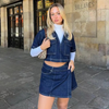 Denim-sættet tilbyder et elegant og komfortabelt sæt, der ubesværet blander stil og funktionalitet. Dette todelte outfit har en unik top med en matchende skort, der kombinerer elegansen af en nederdel med komforten af shorts. Det er fremstillet af førsteklasses denim og er perfekt til solrige dage, afslappede udflugter eller festivaleventyr.