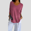 Denne striktop til kvinder kombinerer en afslappet silhuet med en V-udskæring og er derfor et alsidigt valg, der passer til mange lejligheder. Strikstoffet har en vis strækbarhed, så det bevæger sig med dine bevægelser, og designet langs kanten og ærmerne giver et poleret look, der passer godt til jeans eller nederdele. Ideel, når du ønsker noget, der fungerer flot som overgang fra dag til aften.