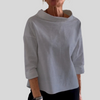 Denne moderne dametop er designet til at forbedre hverdagens outfits og kombinerer rene linjer med diskrete designfunktioner for både et afslappet look og smart lag-på-lag-løsning. Snittet giver fleksibilitet til at have på under jakker eller vise sig frem alene.