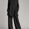 Dette sæt skaber harmoni mellem top og bund og tilbyder et poleret og sammenhængende outfit til forskellige lejligheder.